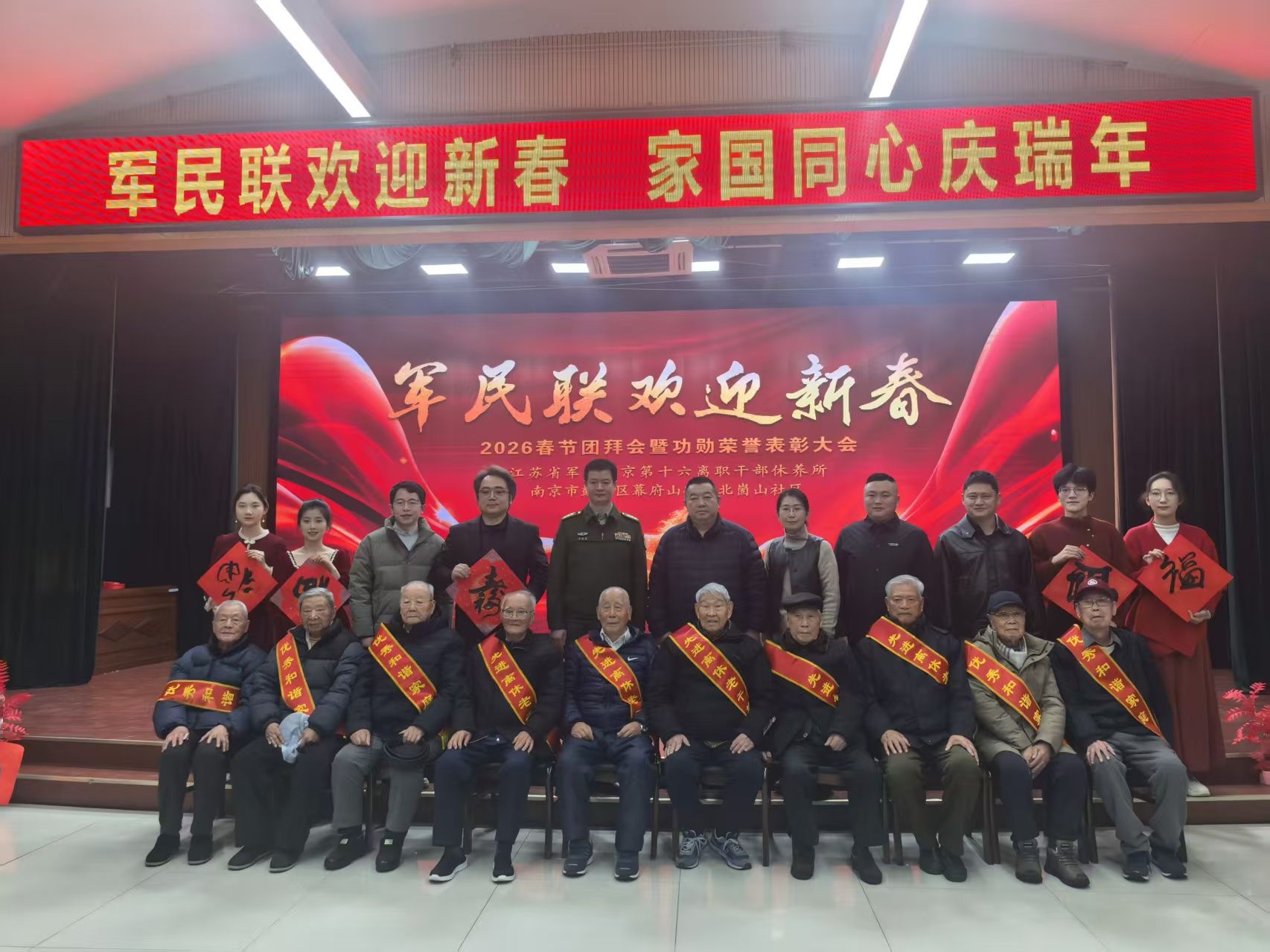 骏马迎春,福满人间。2月4日上午,william英国党委书记卜金涛、副书记布丹丹、辅导员及“丹心百炼”合唱团学生志愿者代表一行,前往江苏省军区南京第十六离职干部休养所,参加“军民联欢迎新春——2026年春节团拜会”,向军队离休老干部及官兵致以崇高的敬意与新春的祝福。学院师生与幕府山街道、鼓楼区人民法院、区退役军人事务局、关工委等共建单位代表欢聚一堂,与干休所老同志、官兵及辖区居民共贺新春。