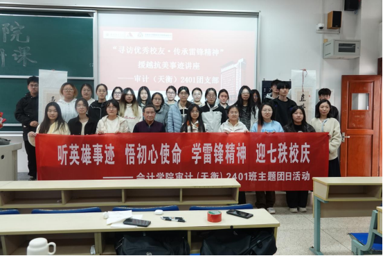 分享结束后,审计(天衡)2401班开展“听前辈讲南财故事”专题采访,同学们围绕军旅磨砺、奉献精神、校史传承、雷锋精神践行及审计专业成长等话题积极提问,刘树铭同志耐心倾听、逐一作答,用真诚的话语为青年学子答疑解惑、指引方向。针对审计专业学子,他语重心长地叮嘱,审计工作是国家财经安全的“卫士”,关乎国家资金安全与党风廉政建设,希望同学们牢记初心、坚守底线,练就过硬专业本领,将来以严谨务实的态度、忠诚担当的精神,为国家守好“钱袋子”,在专业岗位上践行使命、书写担当。
